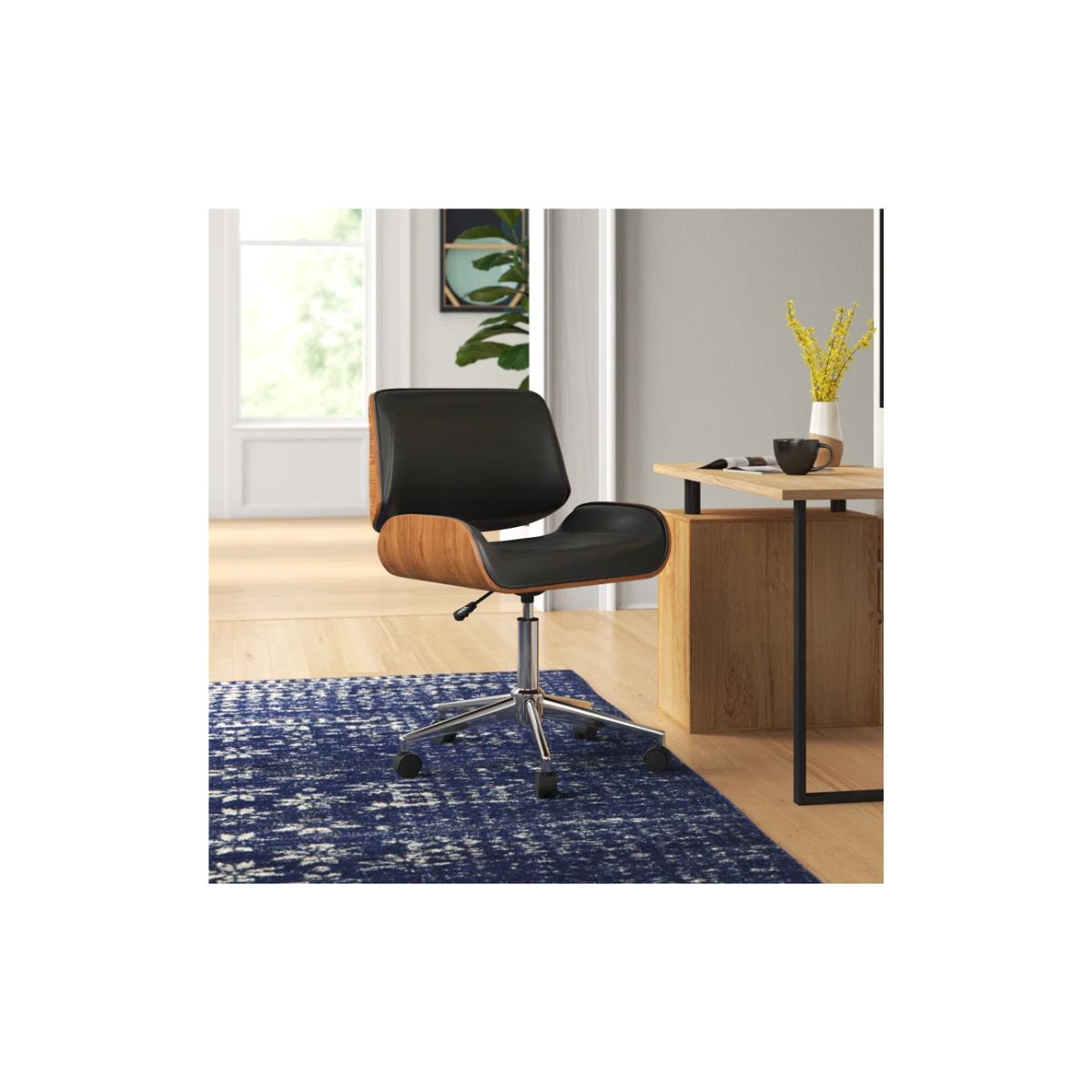 La silla de oficina posee un diseño Mid-Century, siendo una opción elegante y funcional con un diseño que combina detalles de mediados de siglo con características actuales.